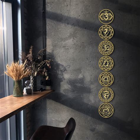 Chakra Symbols Metal Wall Art: Yoga Studio Decor, Meditation Accessory