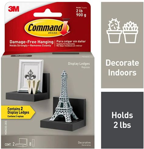 Command Display Ledges Black: Floating Wall Shelf Set, 2 Picture Ledges, Plastic, Slate, 2Lb Capacity, No Tools Required
