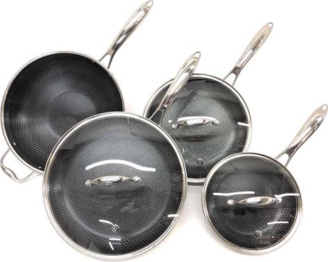 Hexclad 7-Piece Hybrid Stainless Steel Cookware Set With Lids And Wok - Metal Utensil And Dishwasher Safe, Induction Ready, PFOA-Free, Easy To Clean Non Stick Fry Pan With Covers