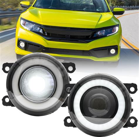 NSLUMO JDM Led Fog Lamp Assembly Replacement For Honda 2016-2021 Civic/ 15-20 Fit/ 13-15 Accord/ 19-20 HRV Xenon White LED Halo DRL Driving Lamps 12V