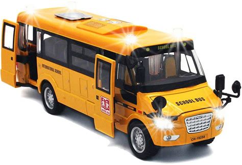 9" Pull Back School Bus,Light Up & Sounds Die-Cast Metal Toy Vehicles With Bright Yellow And Openable Doors