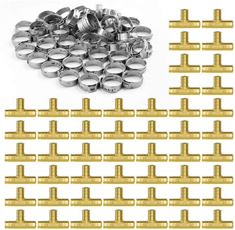 Pipe Fittings, 1/2 in. 50 PCS Brass Pipe Fittings, Clamp-Style Tee Pipe Connector Brass Air Fittings