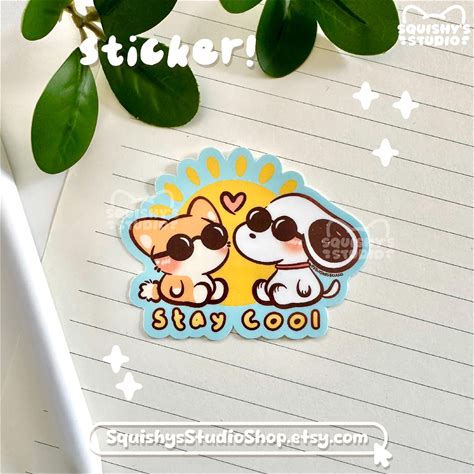 Stay Cool Summer Snoopy With Corgi Sticker | Kawaii, Funny, Cute Stickers | Laptop/Water Bottle Stickers
