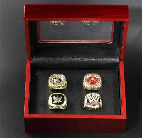 4 Pcs Set WWE - American Professional Wrestling Championship Ring With Wooden Display Box Size 11