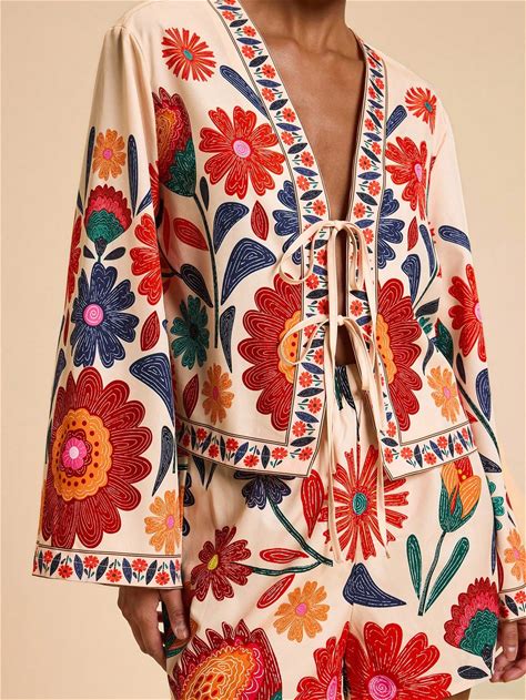 2Pcs Women Vacation Floral Print Loose Long Sleeve Shirt & High Waist Loose Shorts Set Boho Tops For Women Boho Blouses Resort Outfits For Women Floral Boho Top,Casual Woman Style, Fall Outfits For Women, Chic Autumn,Going Ou