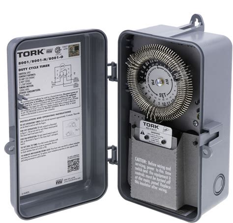 Tork Electromechanical Cycle Timer: 24 Hr, 120V AC, SPDT, Mechanical Model: 8001-N