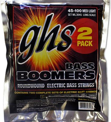 GHS ML3045 Bass Boomers Roundwound Electric Bass Guitar Strings - .045-.100 Medium Light Long Scale .045-.100 Medium Light Gauge Electric Bass