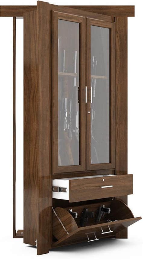 53" Assembled In Wall Hidden Gun Safe Cabinet With 3 Removable Shelves And 1 Adjustable Rack - Black