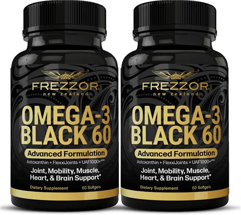FREZZOR Omega 3 Black For Joint Care & Comfort - New Zealand Green Lipped Mussel Oil Capsules 53X Higher Potency With UAF1000+ Super Antioxidant, No