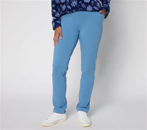 Denim & Co. Active Reg Duo Stretch Slim Strt Pant, Size Medium, Med Denim Blue