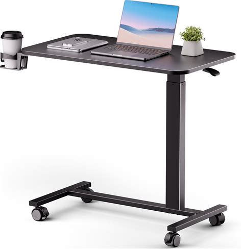 COMHOMA Adjustable Overbed Bedside Table With Lockable Wheels, Pneumatic Mobile Standing Laptop Desk, Small Standing Desk Portable Rolling Overbed
