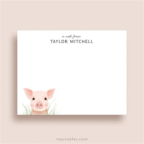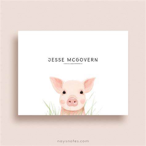 Personalized Pig Stationery - Pig Note Cards - Flat, Set Of 10 +