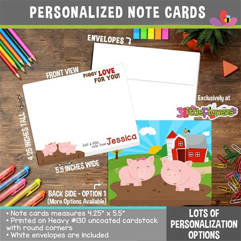 Pig Note Cards - Set Of Personalized Note Cards - 4.25" X 5.5" - Double-Sided Thank You Cards - Children Stationery - Kids Notecards