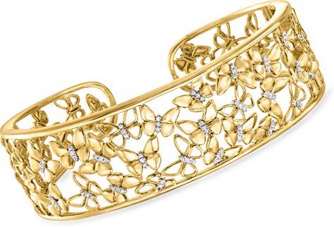 Ross-Simons 0.25 Ct. T.W. Diamond Butterfly Cuff Bracelet In 18Kt Gold Over Sterling, Women's, Adult