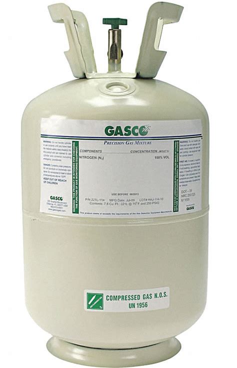 Gasco Calibration Gas: Nitrogen, Disposable, +/-5% Accuracy, C6H14/O2, Calibration Gas, Cylinder Model: X03NI87CP100009