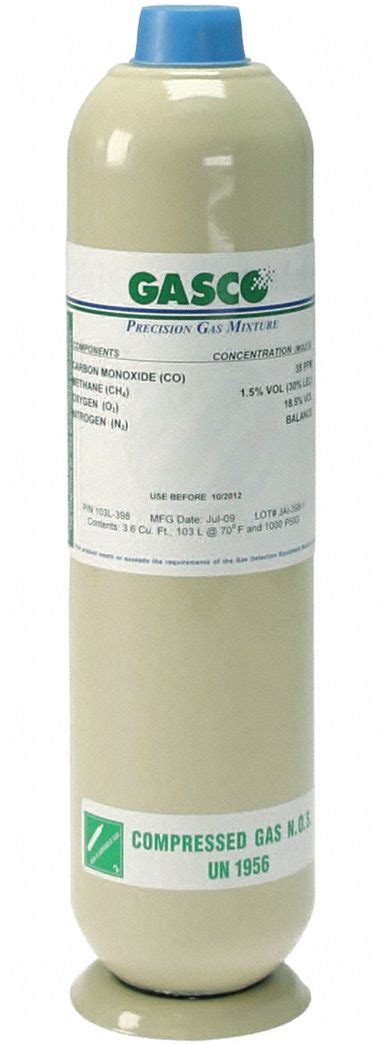 Gasco Calibration Gas: Nitrogen, Disposable, +/-5% Accuracy, C6H14/O2, Calibration Gas, Cylinder Model: 58L-336