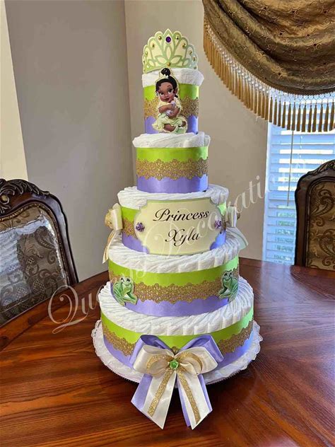 5 Tier Diaper Cake/ Princess Themed Diaper Cake/ Tiana Diaper Cake/ Princess Baby Shower Centerpiece/ Girl Baby Shower/Beautiful Diaper Cake