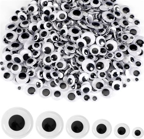 JULMELON 500 Pieces Wiggle Googly Eyes Self Adhesive Black White Craft Eyes For DIY Crafts Decoration (0.4 In, 0.6 In, 0.8 In, 1 In, 1.2 In)