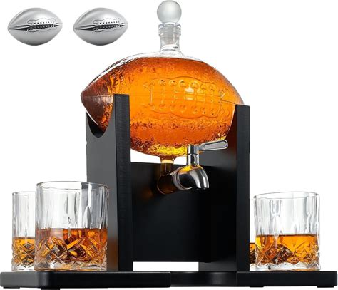 Football Whiskey Decanter Set For Men, Football Gifts For Men, 47Oz Liquor Decanter Set With 4 Glasses + 4 Footballs Chillers, Gifts For Dad Husband
