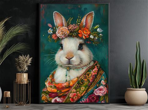 Adale Vintage Rabbit Canvas Wall Art Bunny With Flowers Picture Country Animal Prints Vintage Gothic Painting Cute Bunny Pictures Moody Animal Artwork
