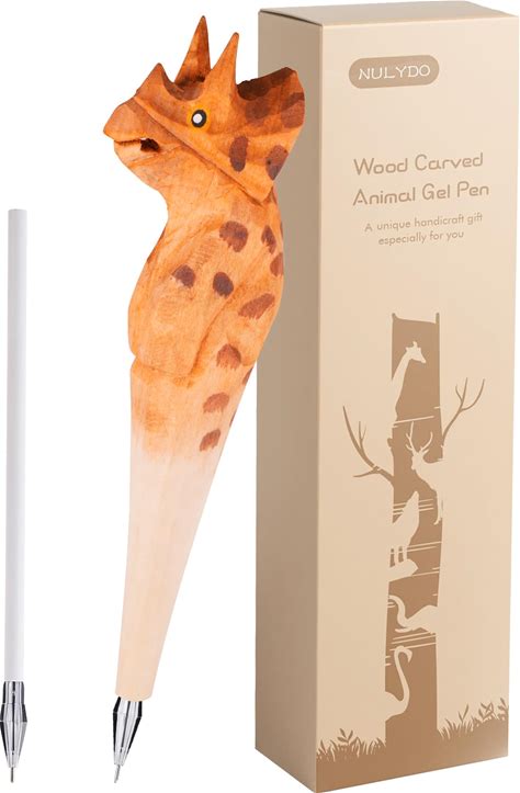 NULYDO 100% Handmade Wood Carved Animal Gel Pen | Triceratops Dinosaur, Cute Stationary School Supply Office Supply, Fun Pen Novelty Writing Pen,