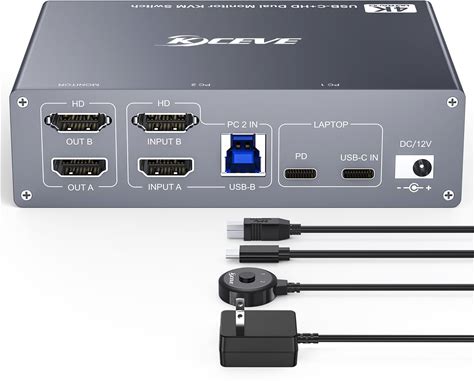 KVM Switch Dual Monitor 4K@60Hz, 2 Port HDMI KVM Extended Display, PC Screens Keyboard Mouse Switcher 2 in 2 Out With Button Switch Supported With 2 Pcs USB Cables, Audio Output And USB Release