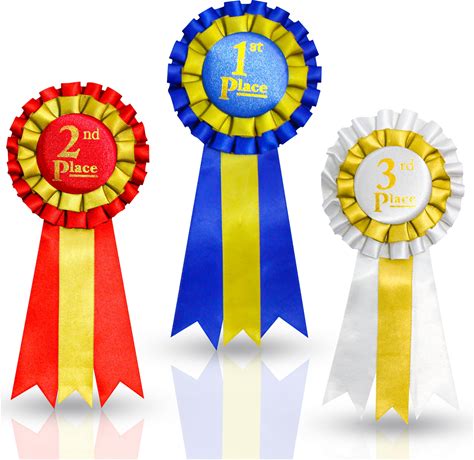 Premium Award Ribbons Blue,Red,White - 1St, 2Nd, 3rd Place - 1 Set (3 Ribbons) - First Second Third Place Winner Ribbons