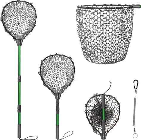 Rubber Fishing Net With Telescoping Handle - Silicone Fish Nets For Fishing, Aluminum Alloy Landing Net, Telescoping Handle And Rubber Net, Maximum