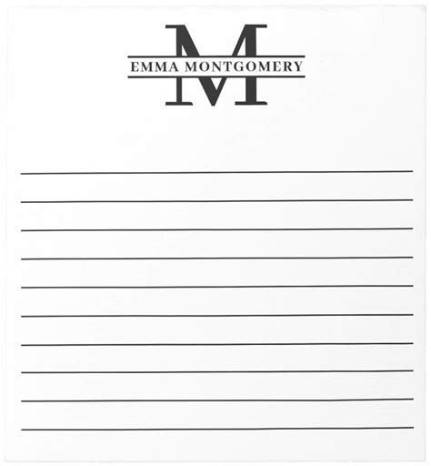 Personalized Black Monogram Name Lined Notepad