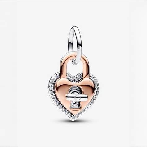 Pandora Two-Tone Twistable Heart Padlock Double Dangle Charm
