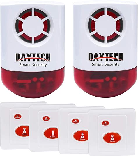 Daytech Strobe Siren Panic Alarm Button Siren Alarm With Light For Home Caring Loud Outdoor SOS Alert System 2 Red Flashing Siren And 4 Emergency Button For Store Hotel Jewelry Shop Security