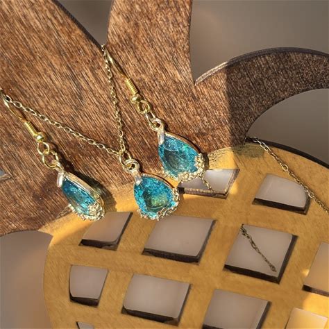 Emerald Water Drop Earrings And Necklace Set: Gold Turquoise Jewelry