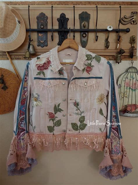 Upcycled Jean Jacket Hand Stitched With Unique One Of The Kind Embroidered Details