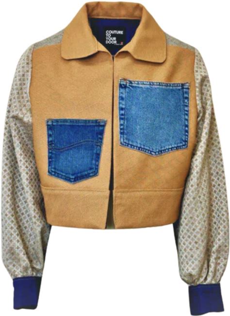 Women's Neutrals / Brown / Grey Upholstery Upcycled X Denim Jacket | Medium | Couture To Your Door