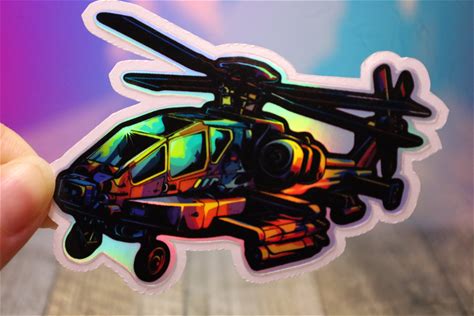 Holo Apache Attack Chopper Helicopter Sticker Holographic Shiny Decal Bottle Car Decal Handmade Heli Shiny Air Force Copter Guardian