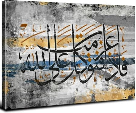 JNAOZI Islamic Calligraphy Canvas Painting, Arabic Calligraphy Painting, Allah Islamic Quotes Poster Canvas Painting Pictures Decoration, Frameless (