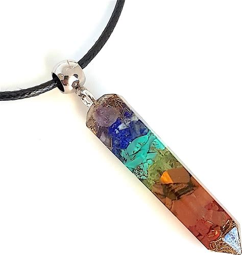Orgone Energy Quartz Point Pendant Necklace With Seven Chakra Healing Stones. Silver Bead. Made In USA