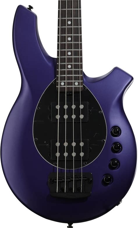 Sterling By Music Man Bongo Electric Bass Guitar - Firemist Purple Satin Electric Bass With Mahogany Body, Maple Neck, Rosewood Fingerboard, And 2