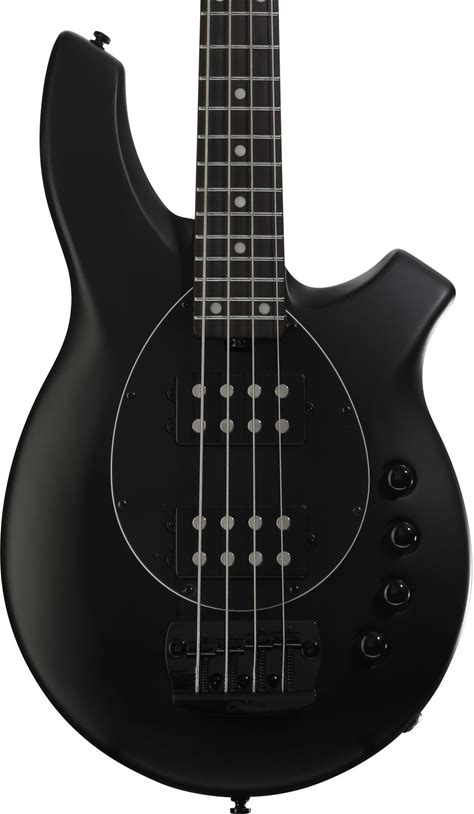 Sterling By Music Man Bongo Electric Bass Guitar - Satin Black Electric Bass With Mahogany Body, Maple Neck, Rosewood Fingerboard, And 2 Humbucking