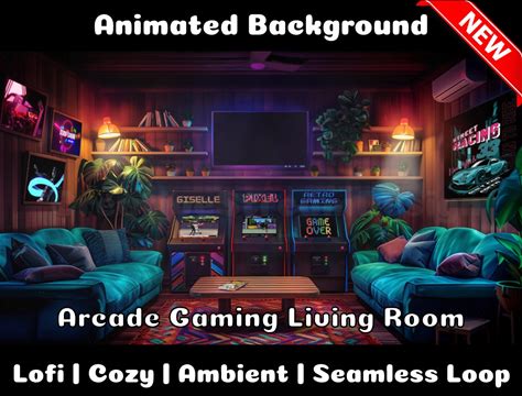 ANIMATED BACKGROUND | Arcade Gaming Living Room | Lofi Cozy Ambience Looped Vtuber Twitch Stream Overlay Background