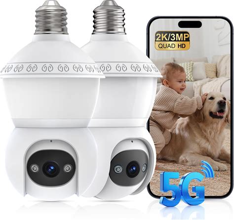5MP E27 Light Bulb Security Camera With 5G Dual Band Wifi Waterproof Color Night Vision PTZ Wireless