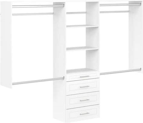 96 Inch Hanging Closet System, 8 ft Closet Organizer System With Hanging Rod, Walk In Mounted Closet System, Built-In Clothes Garment Rack With 3 Shelving Towers(Can Be Cut To Fit), White(Black)