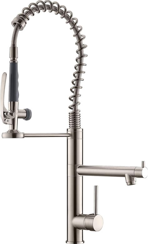 Commercial Kitchen Faucet With Pull-Down Sprayer, Pre-Rinse Spring Spout & Pot Filler Brushed Nickel