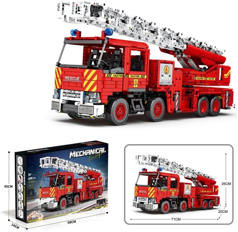 Rescue Fire Truck Building Block Set, Remote Control Fire Truck Toy With Ladder, 3266 Pcs, STEM Gift