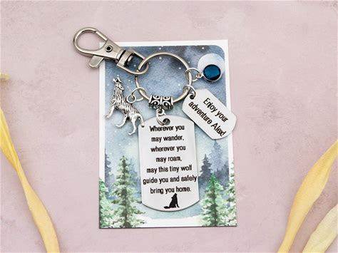 Personalised Wolf Keyring, Safe Travels Gift, Howling Wolf Keychain, Animal Spirit Guide Charm, Good Luck On Your Journey, Wild Outdoors