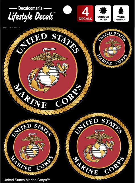 Decalcomania - 4 Piece US Marine Corps Logo Decals - USMC Military Stickers For Truck Car Phone Tablet Laptop - 1.75" To 4" Marine Car Stickers (