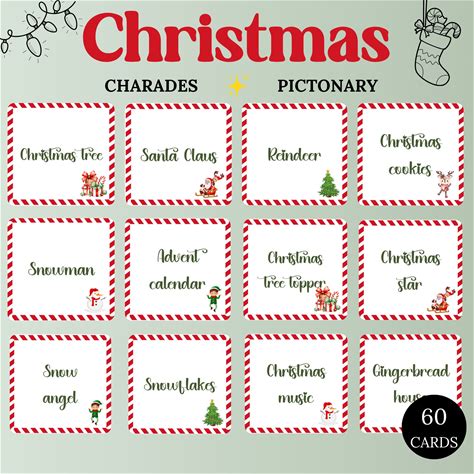 INSTANT DOWNLOAD Christmas Pictionary Or Charades Printable - Holiday Game Printable - Christmas Party Game - Holiday Party Game Print