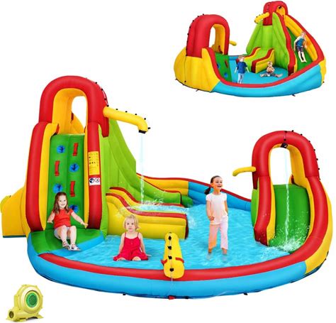 Costzon Inflatable Water Slide, 16x14ft Kids Mega Waterslides For Outdoor With Dual Slides&Climbing For Racing Fun, Large Splash Pool, Blow Up Water
