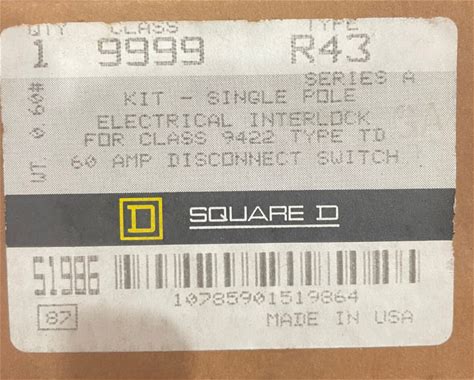 9999R43, Electrical Interlock Kit, Square D, For Class 9422, 60 Amp Disconnect