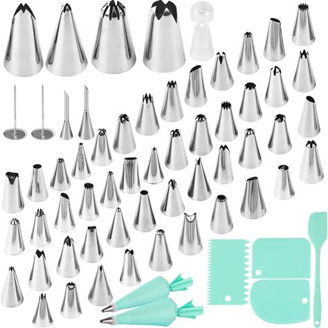 63Pcs Tips Set And Piping Bag: Maiziyun Stainless Steel Piping Nozzles Reusable TPU Piping Bag For Cupcakes Cake Piping Set